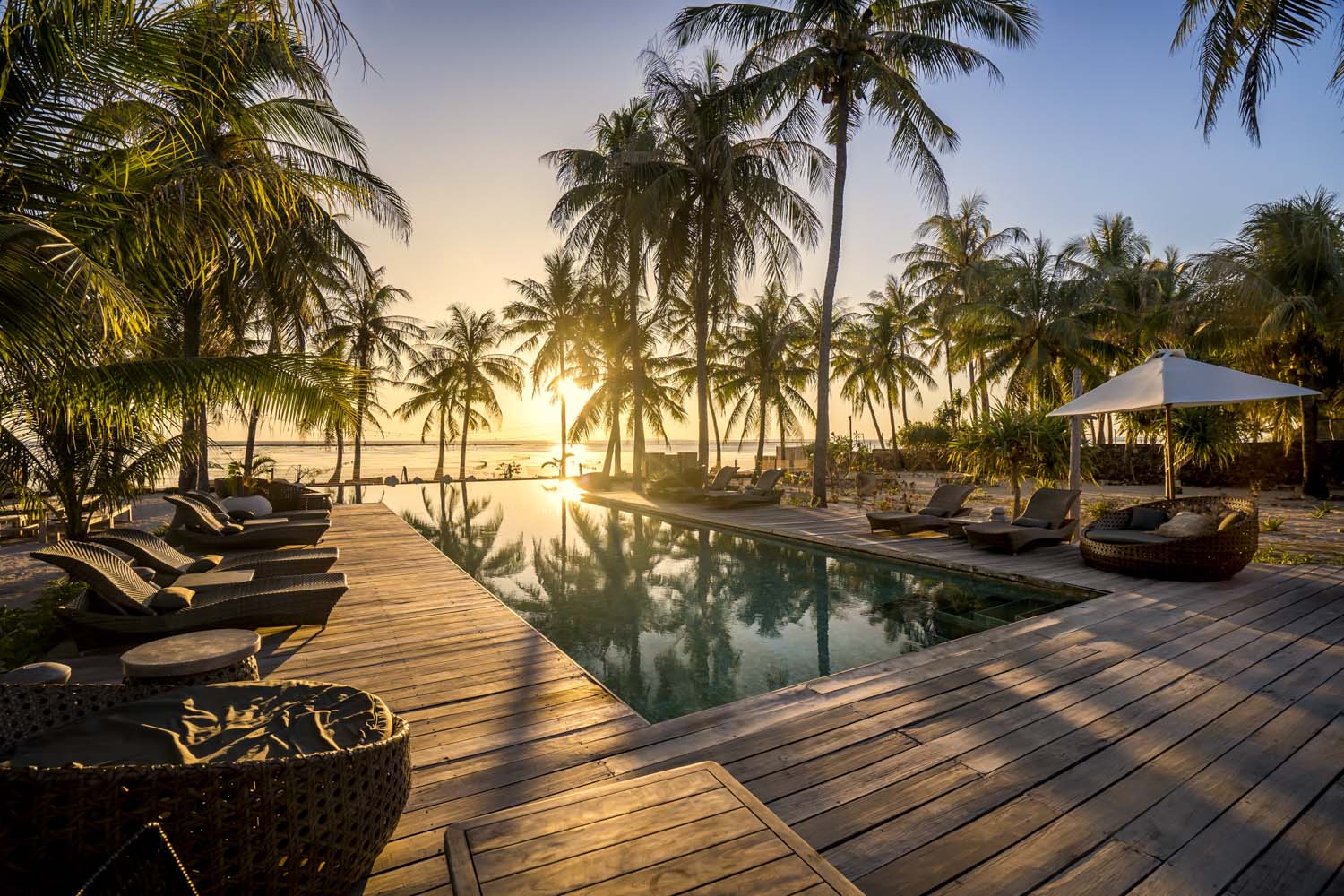 Relax with a drink in hand and enjoy breathtaking sunset views over the Indian Ocean.