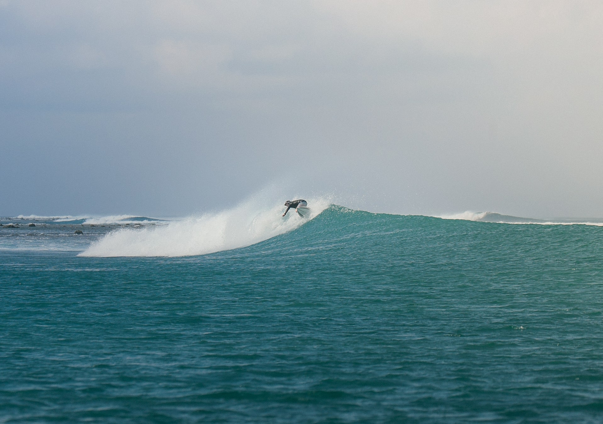 A long coral reef produces a wave a few hundred meters long. In fact, it’s the longest shore break wave in the entire country.